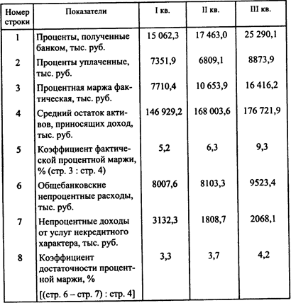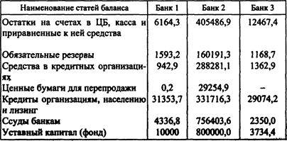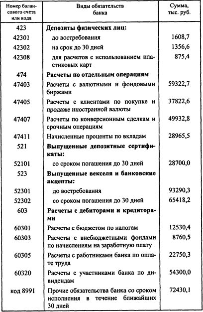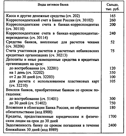 •рассчитываются коэффициенты, описывающие закономерности банковского баланса, и анализируются действующие нормативы ликвидности;