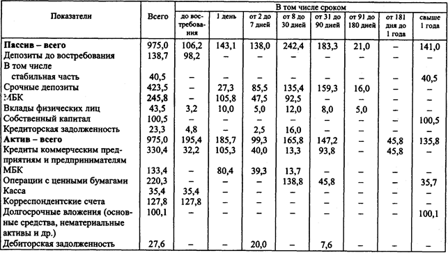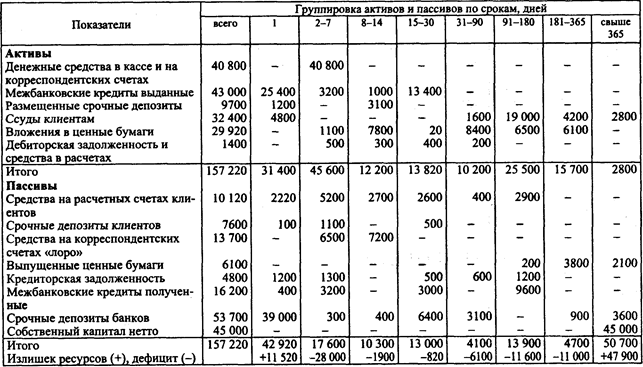 Требуется определить соответствие активов и пассивов по срокам и суммам.