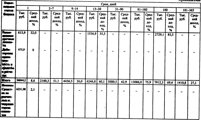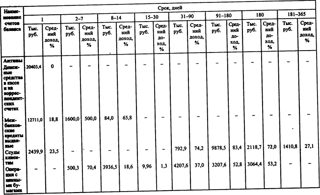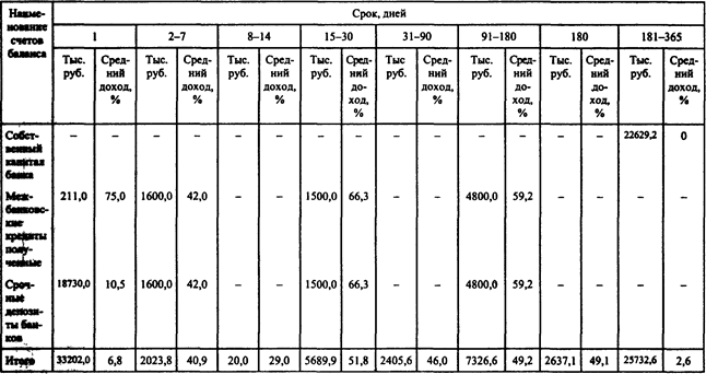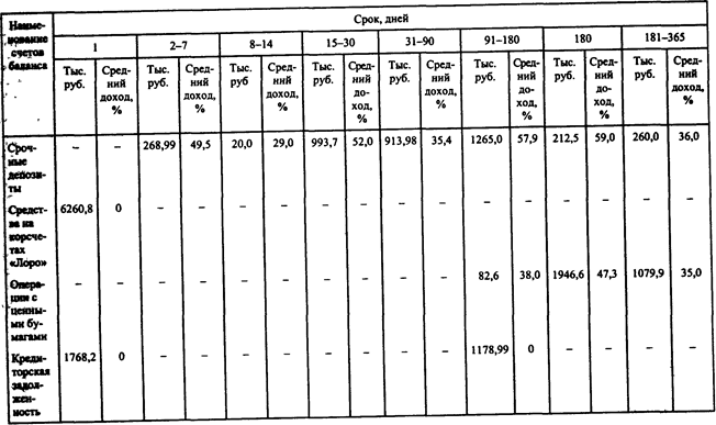 5. Проанализировать соответствие привлечения и размещения средств по срокам.