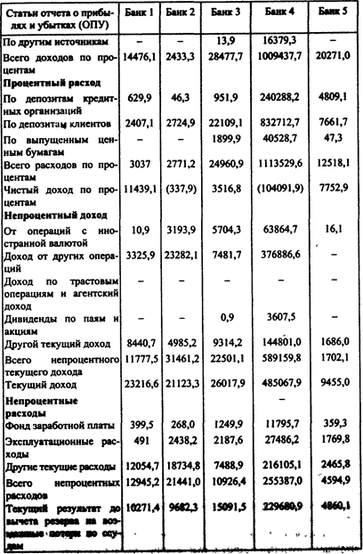 3. Определите, какие из представленных форм отчетности о прибылях и убытках соответствуют балансам банков 1, 2, 3 (для решения этой задачи предварительно рассчитайте балансовую прибыль).