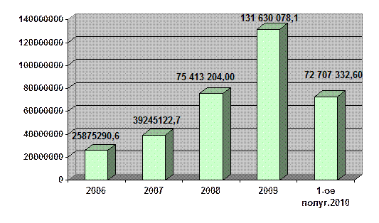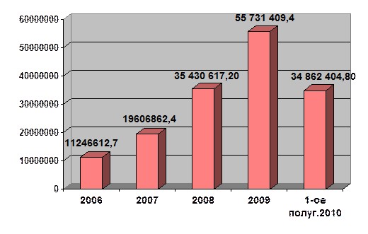 Рисунок Ж.1 – Данные о динамике выплаты страхового возмещения по добровольному страхованию автотранспортных средств физическихлиц на страховом рьнке Республики Беларусь за 2006 – 1-оеполугодие 2010 годы, в тыс.руб.