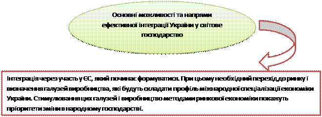 | Можливість інтеграції через підключення до загальносвітового співробітництва на галузевій основі, а особливо у науково-технічній, енергетичній, продовольчій та екологічній сферах. Наша держава тільки входить у систему світового господарства, і від того, як цей процес буде відбуватися, залежить насамперед від можливості подальшого економічного і соціального розвитку держави як органічної підсистеми світової економіки. У процесі інтеграції у світовий економічний простір України буде зустрічатися з великими труднощами. Це обумовлюється рядом причин:По-перше, Україна ще не визначилася в повній мірі з основними напрямками і механізмом структурної перебудови економіки, критерії якої повинні вироблятися з урахуванням особливостей розвитку світової системи господарювання, а також реальних можливостей і напрямів інтегрування до неї України. По-друге, дуже гостро стоять питання як безпеки у сфері зовнішньоекономічних відносин, так і взагалі економічної безпеки, які необхідно вирішувати з позиції активного конкурентного протистояння на світовому ринку. Слід зазначити, що високий рівень конкуренції на світовому ринку, гнучкість стратегії й тактики товаровиробників, вимагає створення в Україні структур, які б забезпечували і координували функціонування зовнішньоекономічного комплексу, а також усі інфраструктури зовнішньоекономічних зв'язків (страхового та інформаційного обслуговування, судових і арбітражних органів). По-третє, існують деякі суперечності регіонального характеру, усунення яких можливе тільки на довгострокових договірних засадах, шляхом активного включення в інтеграційні процеси, з визначенням глобальних національних пріоритетів та їх збалансованості з іншими, існуючими у світовому економічному просторі. По-четверте, спроби активного спілкування і діалогу з міжнародними фінансовими інститутами - як гарантами входження України у світовий ринок і оновлення економіки - поки ведуть за собою неадекватну реакцію широких кіл української громадськості, оскільки до цих пір не визначено чітко орієнтири нашої держави ні в розвитку його «внутрішньої» економіки, ні в пошуках її майбутнього місця в світовому господарстві.