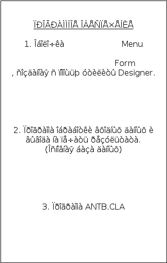Для начала работы с программой вызывается файл antbst.ехе, который начинает работу. При этом выдается на экран начальное основное меню для выбора