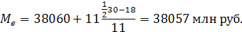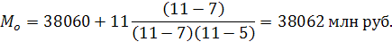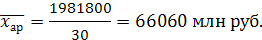 Средний уровень в интервальном ряду динамики вычисляется по формуле: