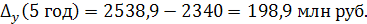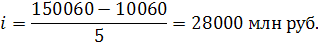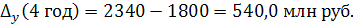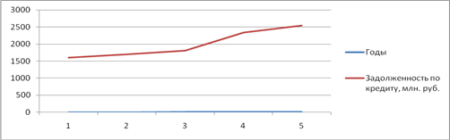 Вывод: На основании полученных данных таблицы можно сделать вывод о том, что задолженность по кредиту нарастает с каждым годом. Наибольший абсолютный прирост, темп роста и темп прироста приходится на 4 год и составляет соответственно 540 млн. руб., 130% и 30%.