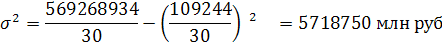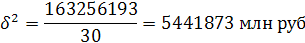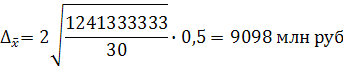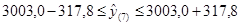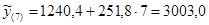 Вывод: При сохранении существующей закономерности прогнозные значения задолженности по кредиту на 6 и 7 годы составят 2751,2 и 3003,0 млн. руб. соответственно и с вероятностью 0,7 будут находиться в интервалах: