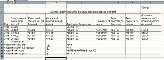Расчет показателей анализа ряда динамики осуществим по формулам, представленным в табл. 2.