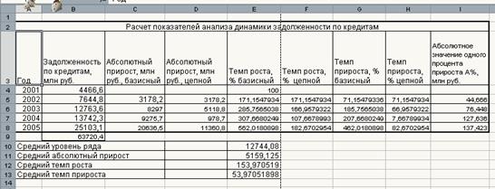 В течение анализируемого периода средний размер задолженности по кредитам составил 12744,08 млн. руб., в среднем за период она увеличилась на 5159,13 млн. руб. или на 53,97%.