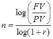 При известных величинах FV, PV, r длительность финансовой операции можно определить по формуле: