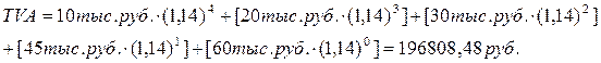 Чистую текущую стоимость, или, как ее иногда называют, дисконтированную прибыль, чистый приведенный доход (или эффект, или величину, по-английски - N et Pr esent V alue , сокращенно NPV ), т.е. разность между дисконтированными доходами и расходами, рассчитывают для потока платежей путем приведения затрат и поступлений к одному моменту времени: