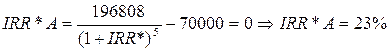 Аналогично будет рассчитываться модифицированная IRR (IRR*) :