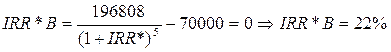 (б) Проделав аналогичные операции со ставкой реинвестиций (дисконт-фактора), равной 20%, можно убедиться, что NPV*A < NPV*B и IRR*A < IRR*B, так что проект В очевидно более предпочтителен, чем проект А.