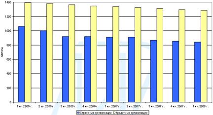 Рис.1.1. Количество страховых и кредитных организаций, 2006 – 2008 гг.