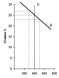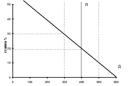 Общий денежный спрос (Д) и денеж ное предложение (П), образ ующие денежный рынок, изображены на рис .1. 2.