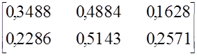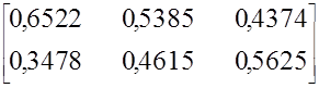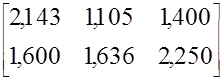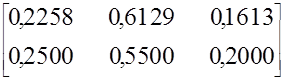 Значение коэффициента Е21-1.6 свидетельствует о том, что один клиент первой потребительской группы, пользующийся услугами второго вида, за рассматриваемый период приобретает 1.6 услуги этого вида. Другими словами, коэффициенты E1J отражают активность клиентов отдельных потребительских групп, пользующихся услугами определенного вида, в их приобретении.