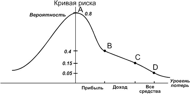 Имея в распоряжении данные о частоте возникновения потерь определенного уровня, можно построить график зависимости между этими переменными. Полученная кривая будет отражать соотношение величины потерь и вероятности их возникновения, иначе говоря, это будет кривая риска.