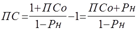 Однако, существует еще один способ компенсации потерь риска невозврата кредитов, который предусматривает включение уровня риска в цену кредита, то есть в процентную ставку. Мы уже знаем, что количественно кредитный риск можно определить через частоту или вероятность наступления события (Рн). При этом допускается, что базовой или исходной ставкой для банка является ставка безрискового кредита (Псо). Однако, наличие риска побуждает повышать ставку кредитования до уровня ПС, ожидая при этом компенсации потерь. Для расчета ставки с учетом уровня риска предлагается следующая формула.