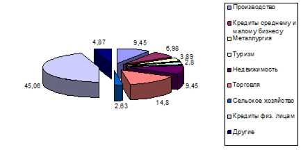 Изменения, которые происходят в экономике Украины, допускают существенные изменения во взаимоотношениях между коммерческими банками и субъектами ведения хозяйства. Высокая рискованная банковская деятельность главным образом связана с условиями и результатами деятельности его клиентов. Анализ структуры активов банковской системы Украины свидетельствует о том, что более трети из них придется на кредитный портфель. Кредитные операции банка являются ведущими среди других, как по прибыльности, так и по масштабности размещения средств.