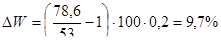 Определим рост производительности труда (W) при снижении категории веса работ от IV к II по формуле: