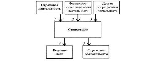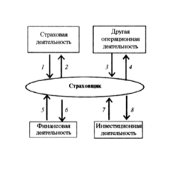 Рис. 2. Общая схема денежных потоков страховщика в соответствии с направлениями его деятельности:
