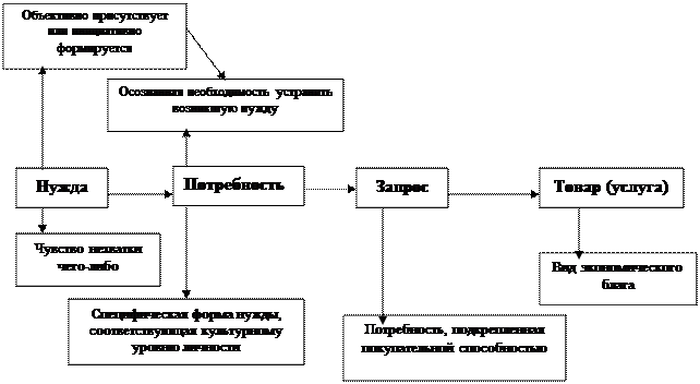 Приведенная схема является универсальной, позволяющей проиллюстрировать появление любого вида товара или услуги. Различие между товарами как видами экономических благ определяется особенностями потребностей и, как следствие, запросов людей.