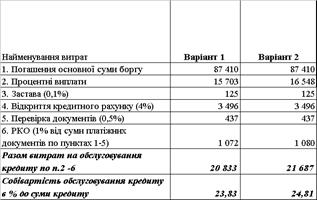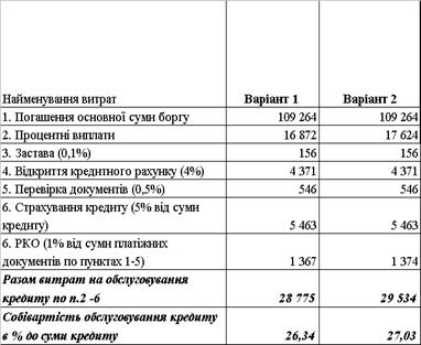 РОЗДІЛ 2. РОЗРАХУНКИ ВАРІАНТІВ КРЕДИТУВАННЯ ПІДПРИЄМСТВА
