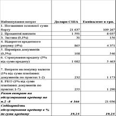 Розрахункова собівартість комбінованого кредиту становить – 19,69%.