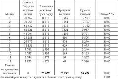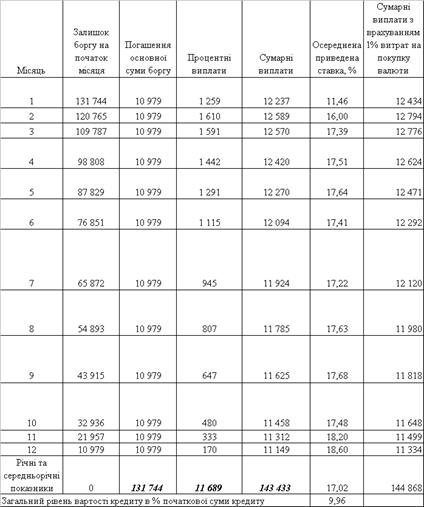 Таким чином, за результатами проведено аналізу в курсовій роботі був вибраний комбінований кредит: