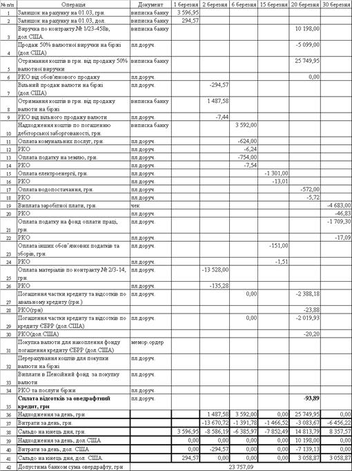 Таблиця 3.13 Розрахунок процентного платежу по овердрафту за березень 2007, грн.