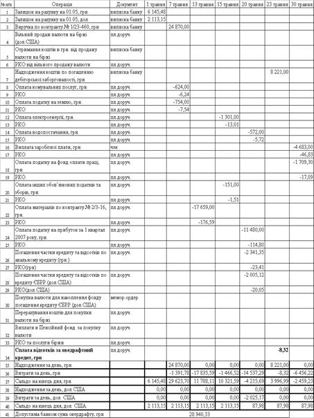 Таблиця 3.14 Розрахунок процентного платежу по овердрафту за травень 2007, грн.