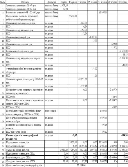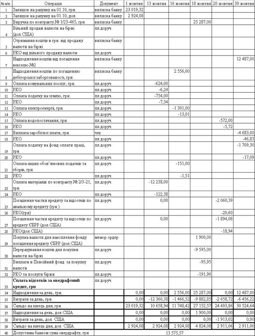 4) складені звіти про обороти підприємства за поточним рахунком з урахуванням отриманих кредитів, порядку проведення розрахунків в іноземній та національній валюті;