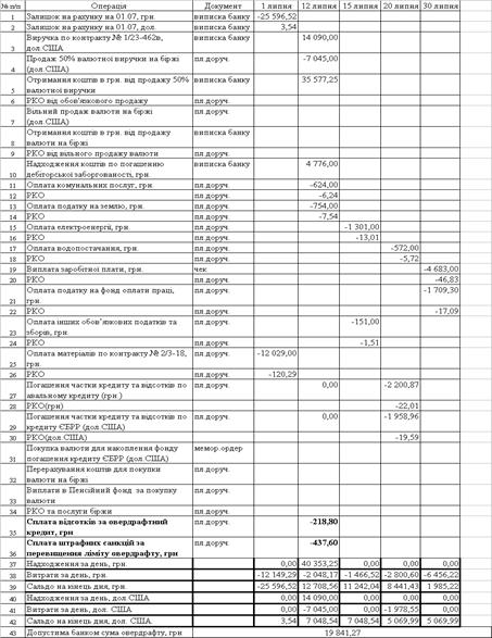 Таблиця 3.16 Розрахунок процентного платежу по овердрафту за липень 2007, грн.