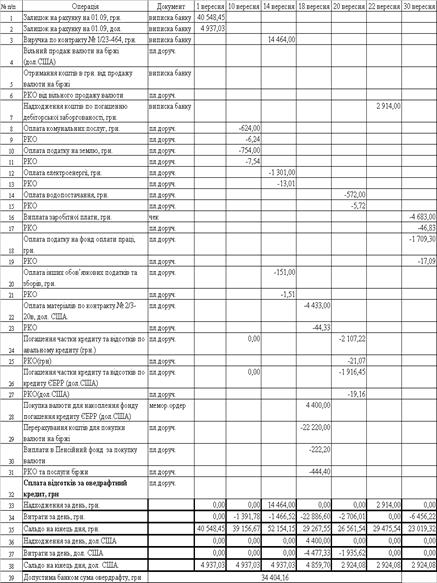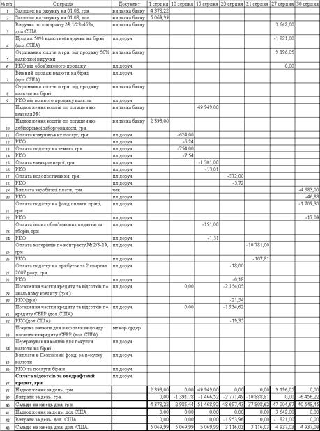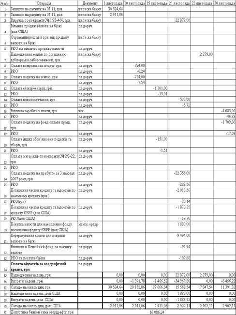 д) сальдо коштів на валютному розрахунковому рахунку з рівня 255 дол. США станом на 01.10.2007 року знизилось до рівня 54,35 дол. США станом на 01.01.2008 року;