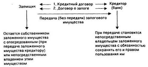 В соответствии с законодательством кредитор и з аемщик подписывают договор о залоге, который должен быть заключен в письменной форме. Существенн ыми условиями договора залога являются предмет залога и его оценка, существо, размер и срок исполне ния обязательства, обеспечиваемого залогом, а также условие о том, у какой из сторон (залогодателя или залогодержателя) находится заложенное имущество (рис. 1) .