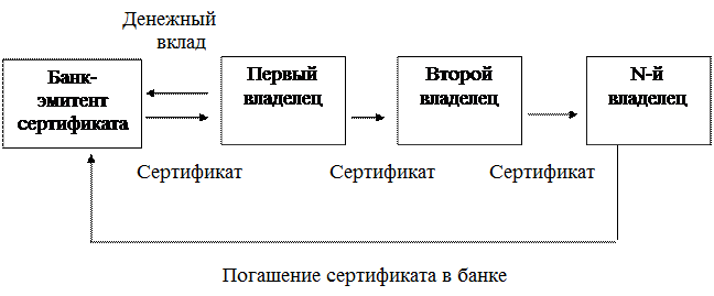 Схему обращения депозитного и сберегательного сертификатов можно представить следующим образом: