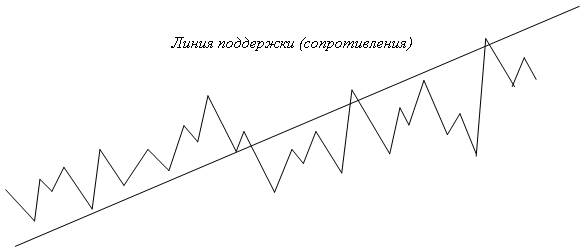 Линией поддержки (сопротивления) называется линия соединяющая ценовые минимумы (максимумы). В динамике рынка эти линии часто переходят друг в друга.