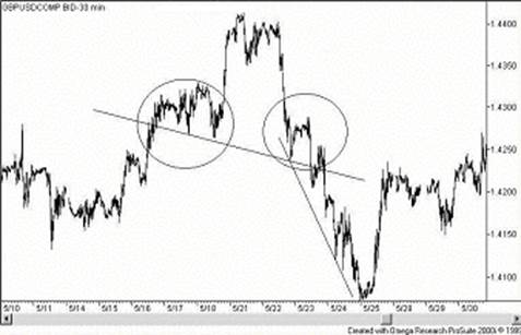 Наряду с линиями тренда и линиями канала используется набор фигур, которые принимает ценовой график в том или ином случае. Фигуры, сигнализирующие о глобальном изменении тренда, называют разворотными .