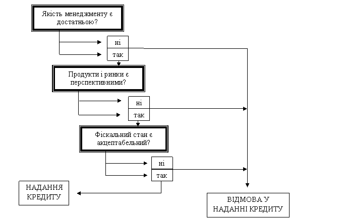 У науково-практичній літературі здебільшого виділяють кількісні та якісні критерії кредитоспроможності. Кількісні критерії пов’язані з оцінкою поточного та перспективного стану позичальника, а якісні виявляються на основі оцінки менеджменту підприємства та його ситуації на ринку факторів виробництва і збуту продукції. Взаємозв’язки між якісними та кількісними параметрами кредитоспроможності підприємства з погляду швейцарських фінансистів наведені на рис. 1.