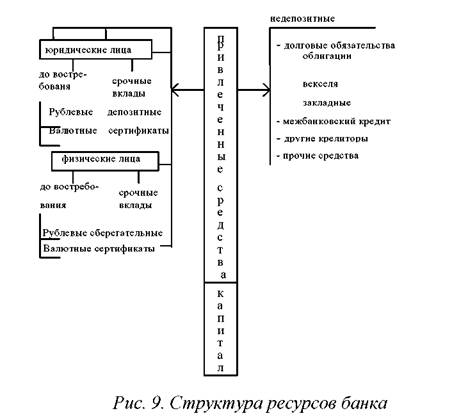 Структура привлеченных средств (рис. 9) отражает категории вклад чиков и сроки их привлечения или формы изъятия (до востребования или срочные вклады).