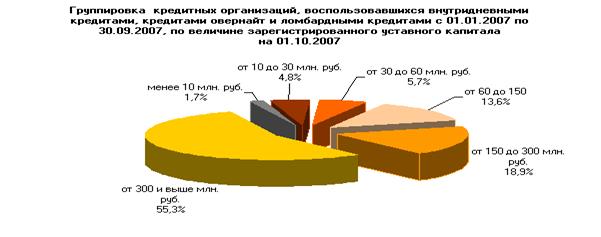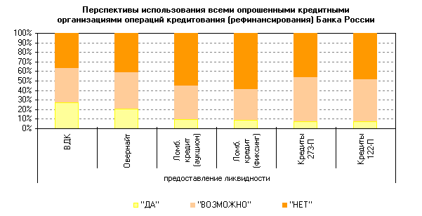 В 2006 г. Было проведено анкетирование по вопросу использования кредитными организациями инструментов денежно-кредитной политики Банка России. В анкетировании приняли участие 598 региональных кредитных организаций (49% действующих кредитных организаций на 01.07.2006), из них 438 (73%) с уставным капиталом до 150 млн. руб., 90 (15%) - от 150 до 300 млн. руб., 70 (12%) – свыше 300 млн. руб.