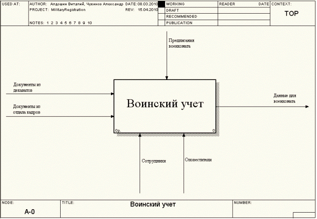 2. в программе BPWin с помощью методологий IDEF0 и DFD описать и спроектировать рассматриваемый процесс (построить соответствующие схемы) и сформировать отчет;