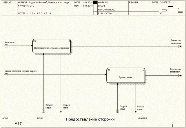 Формирование схемы функционирования второго отдела в спецификации DFD .