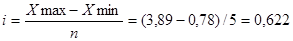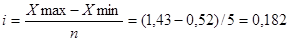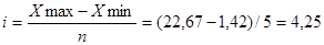 При образовании групп с равными интервалами, величина интервала определяется по формуле: