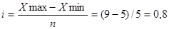 где Xmaxи Xmin- максимальное и минимальное значение признака соответственно,