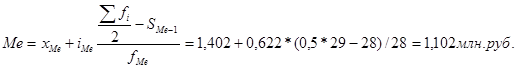 Медианный интервал находится в пределах 0,78-1,402 млн.руб.