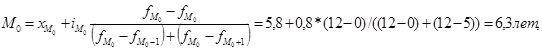Модальным интервалом является 1-ый интервал с частотой Fmo=12
