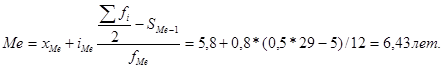 Для нахождения медианы в интервальном вариационном ряду применяется формула: