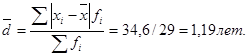2.Среднее линейное отклонение вычисляется как взвешенное по частоте отклонение по модулю середин интервалов от средней арифметической величины: