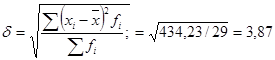 δ² = ∑(хi-х)І/n = (34,54-1,727)І/20 = 53,83