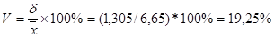 4. Коэффициент вариации – это относительный показатель вариации, равный процентному отношению среднего квадратического отклонения к средней арифметической: